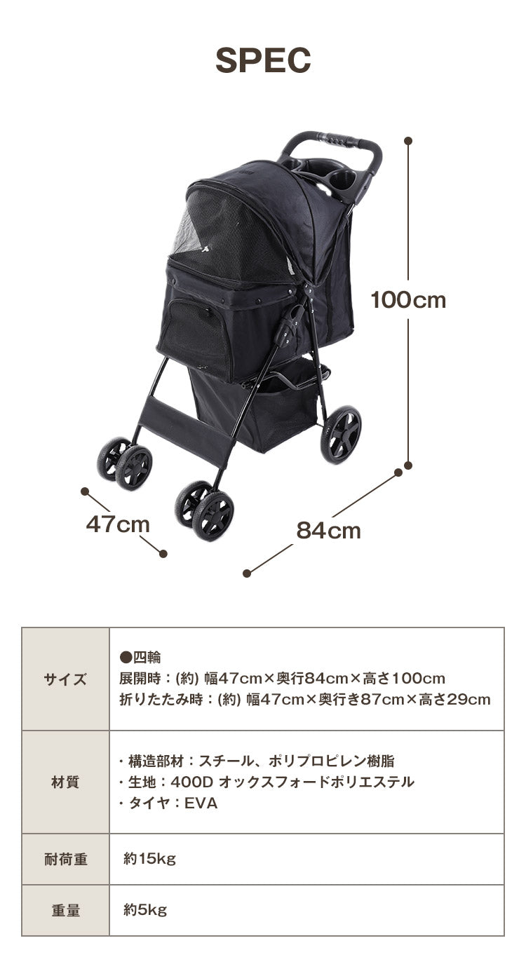 ペットカート 折りたたみ 多頭 ワンタッチ 4輪 軽量 クッション ストッパー付き おしゃれ 犬カート ペットバギー ドッグカート ペットキャリー 小型犬 大型犬 中型犬 耐荷重15kg 猫 犬 お散歩 小動物 ペット用
