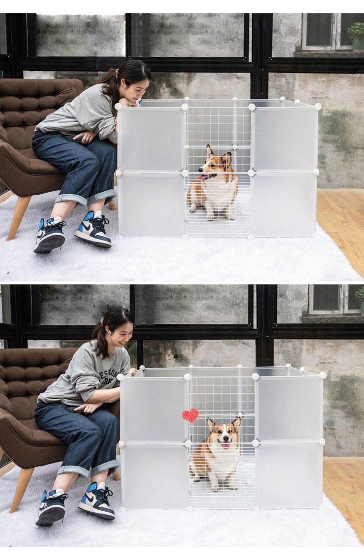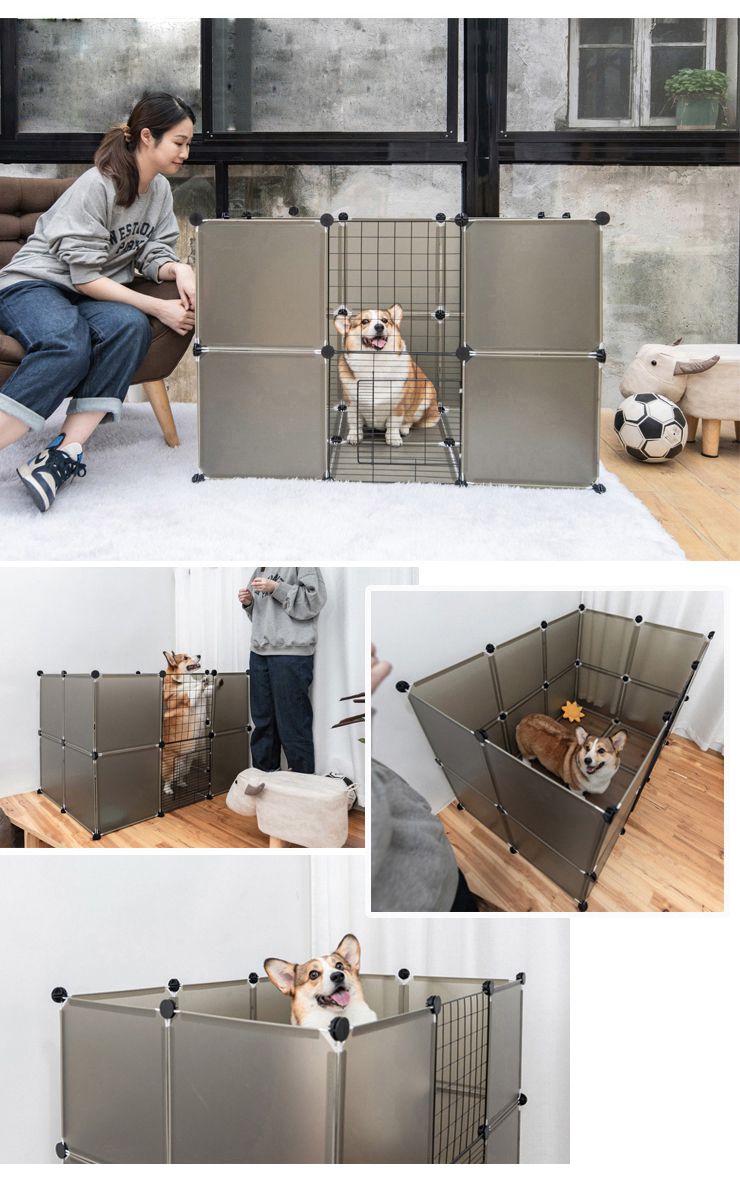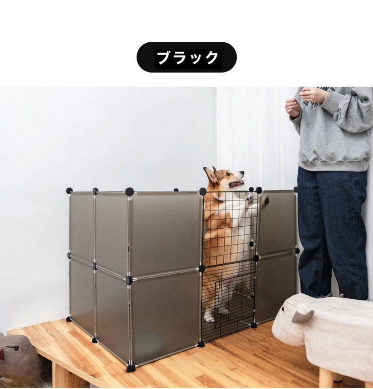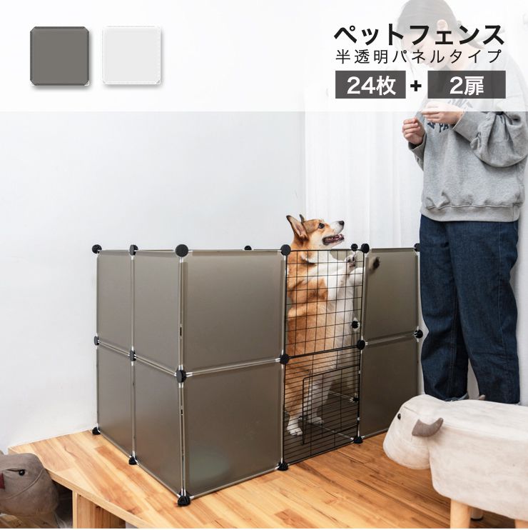 ペットフェンス ジョイント式 ドア付き 扉2枚付き 26枚組 ペットサークル 屋外 透明 パネル 組立簡単 犬 猫 キューブ 収納 ペットゲート ガート 柵 パーテージ 仕切り