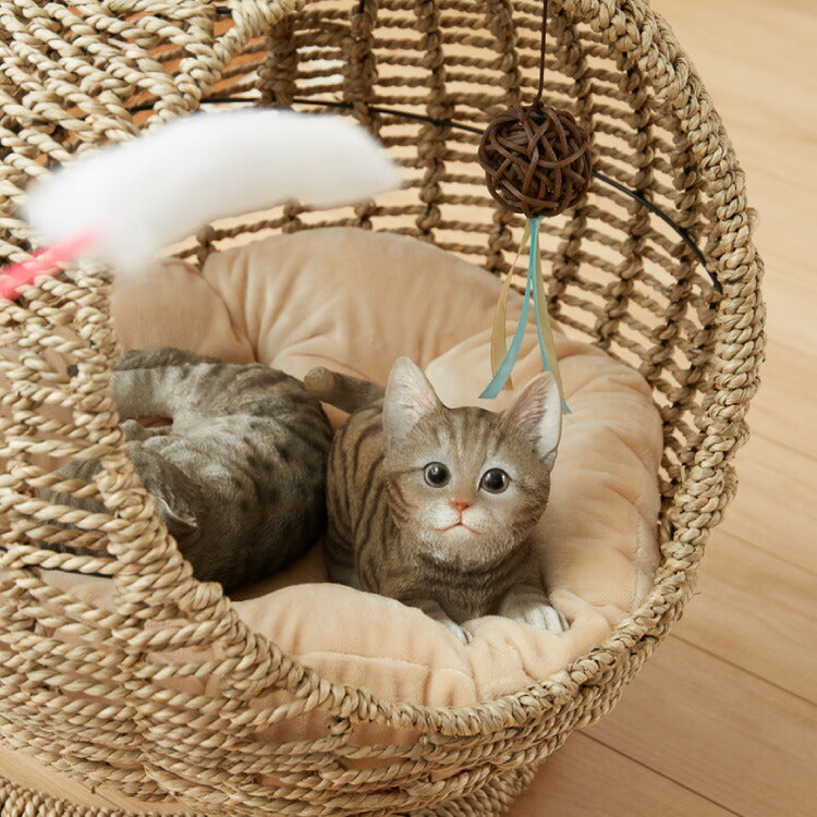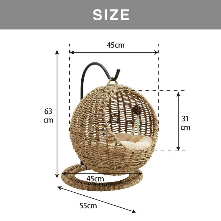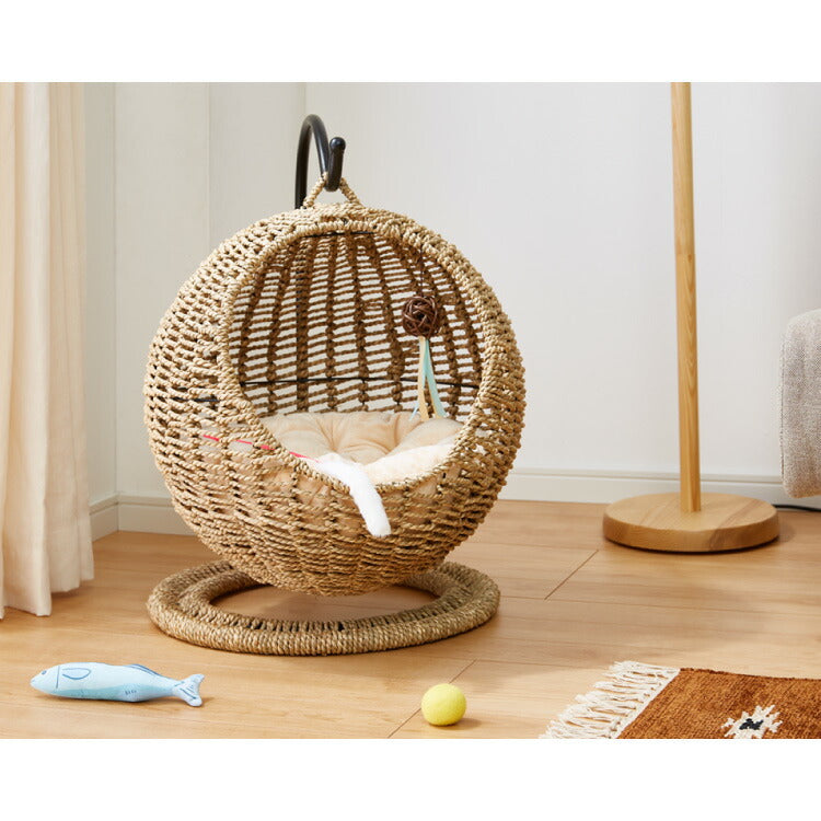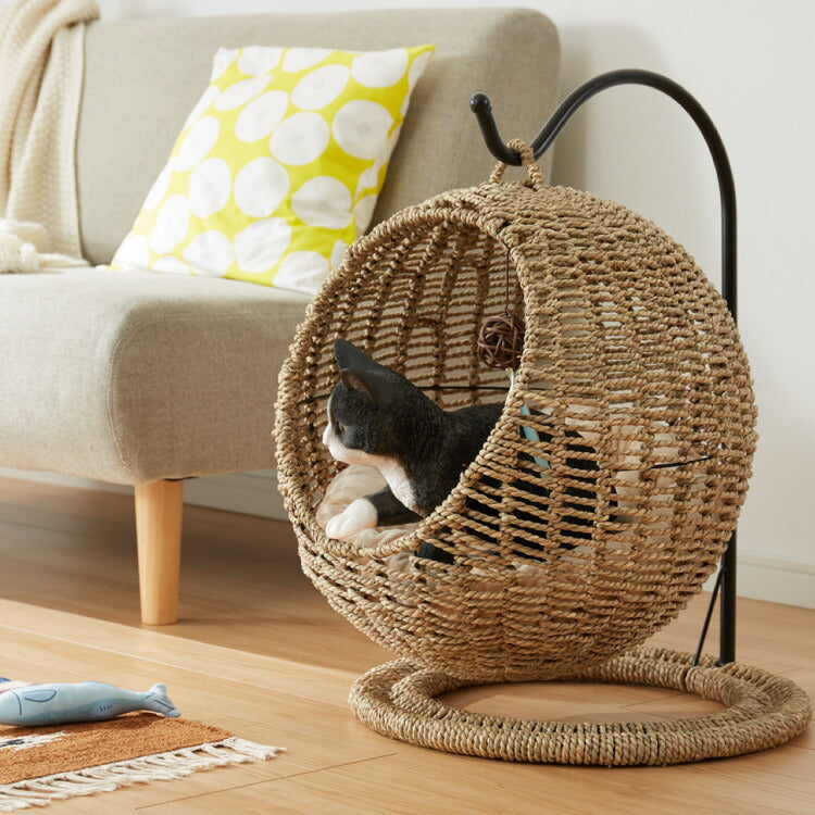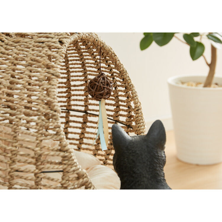 ねこ ネコ 猫 ハンギングチェアー チェアー 通気性 自然素材 カゴタイプ ソファ ベッド ゆりかご 椅子 イス ブラウン 自然 オーガニック おもちゃ付き ボール付き 鈴付き 吊り下げ式 ハンモックチェア 愛猫 愛犬 ペット専用 ハンモックベッド 天然水草編み シーグラス製 ドーム型 ニャンモック
