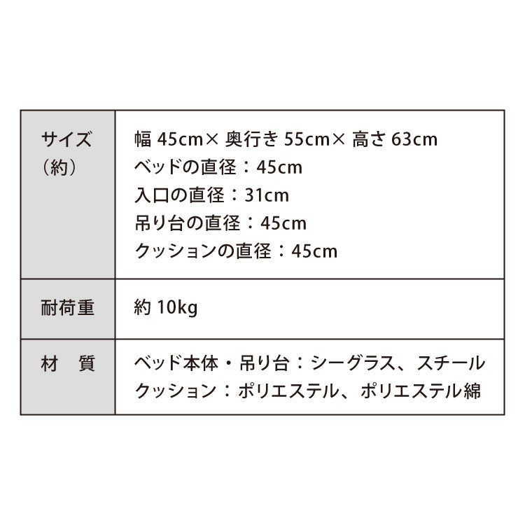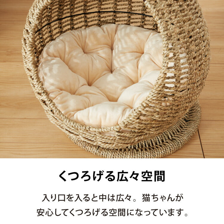 ペット用ハンギングチェア クッション付き シーグラス製 丸型 おしゃれ ナチュラル 北欧 かわいい ペットチェア 猫ベッド ペットベッド ペットハウス キャットチェア ペット用 猫用 ペット用家具 キャットハウス 吊り下げ式 ペット 室内