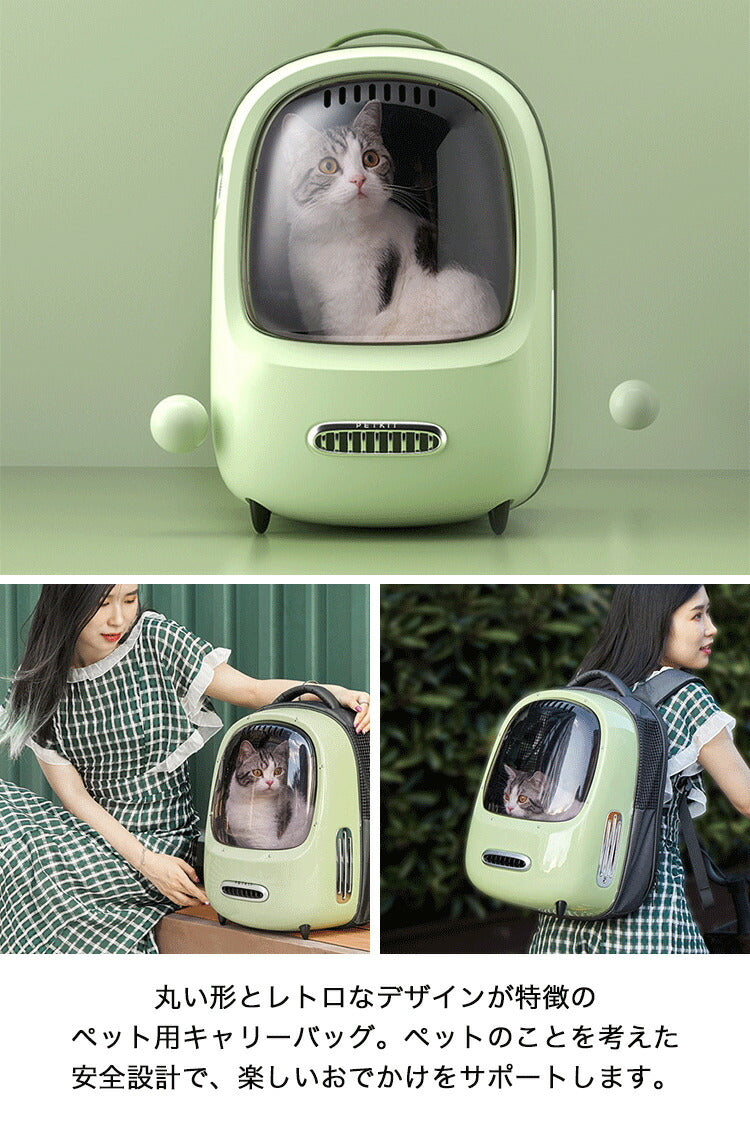 ペットキャリー リュック 送風 ライト付き 軽量 換気口 風速調節 広々 窓付き かわいい レトロ おしゃれ キャリーバッグ ペット用キャリーバッグ キャリーリュック ペット用リュック ペット用 PETKIT 旅行 お出かけ 散歩 犬 猫