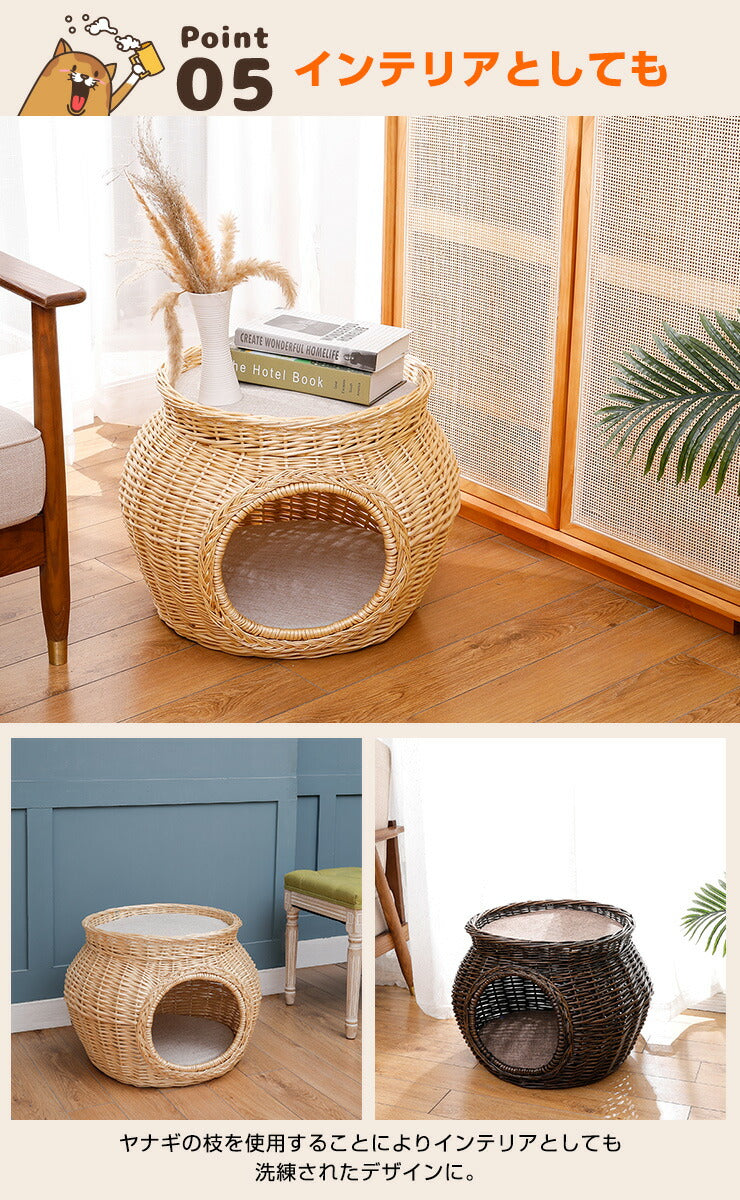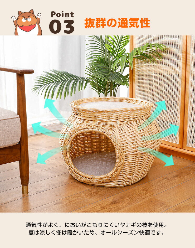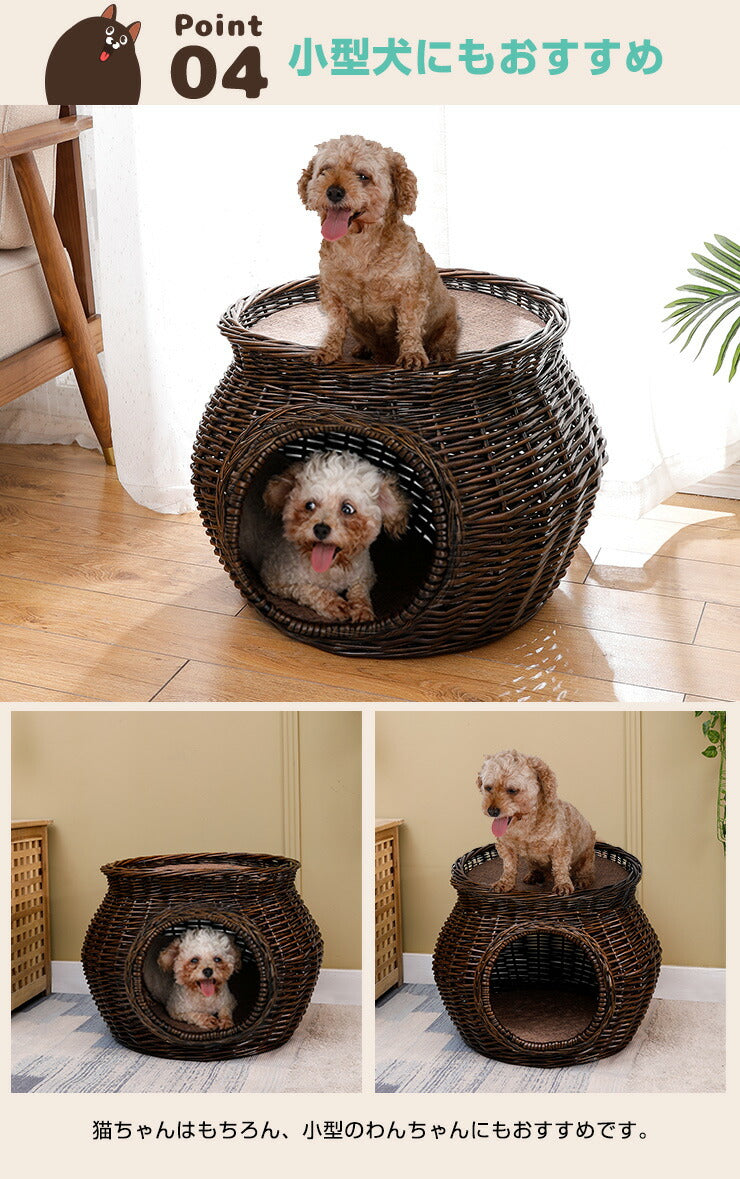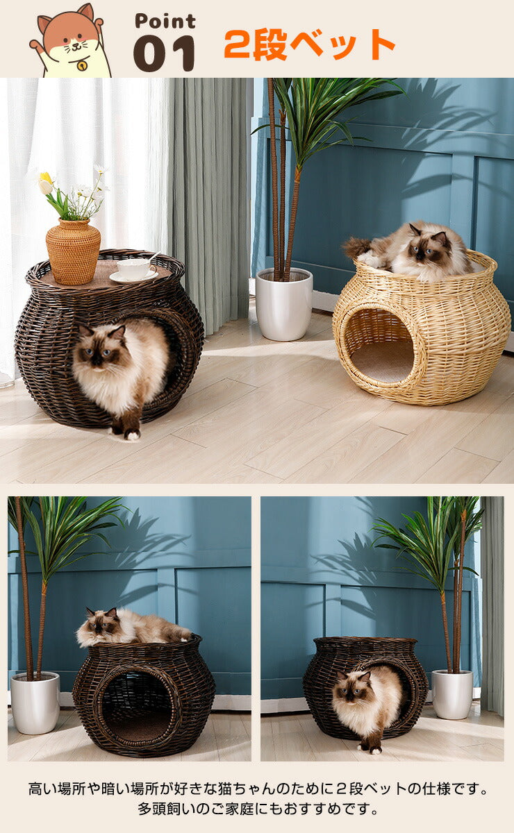 猫、ベッド、ラタン風、2段ベッド、クッション2枚付き、通気性、オールシーズン、おしゃれ、インテリア、ちぐら、ドーム、キャットハウス、猫ベッド、ペット用ベッド、小型犬ベッド、ウレタンクッション付き、小型犬にも!天然籐風がおしゃれな通気性に優れたペットベッド