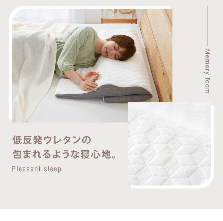 ・幅75×奥行き60cmのワイド設計で、上半身全体を支える低反発枕です。