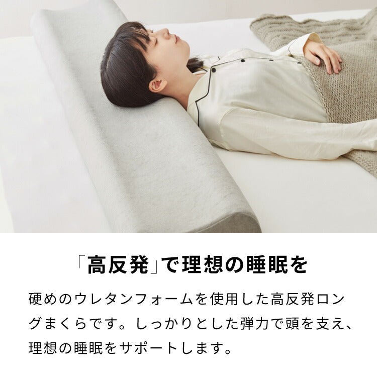 まくら 高反発 ロング 幅140cm 洗えるカバー ウレタン 150N 硬め 体圧分散 パイル生地 アイボリー ブラウン グレー 選べる高さ 寝返り 安眠 快眠 ロングピロー ロング枕 枕