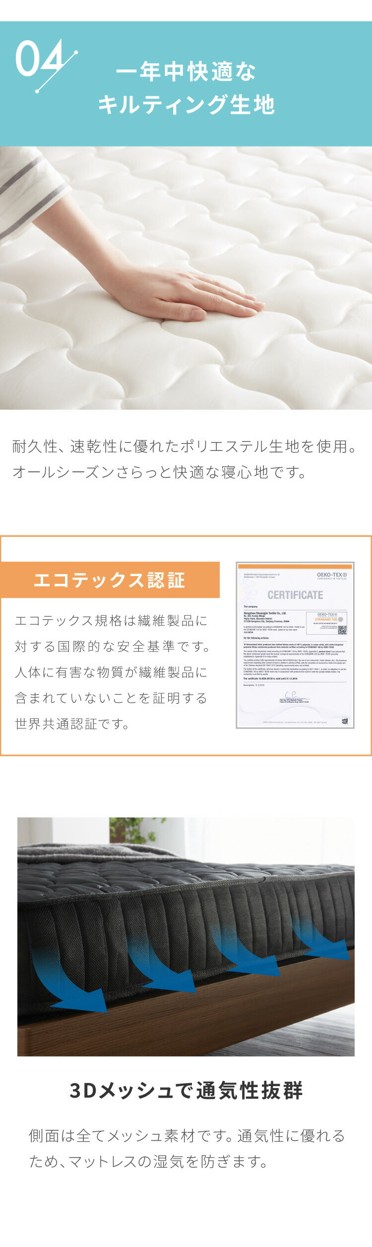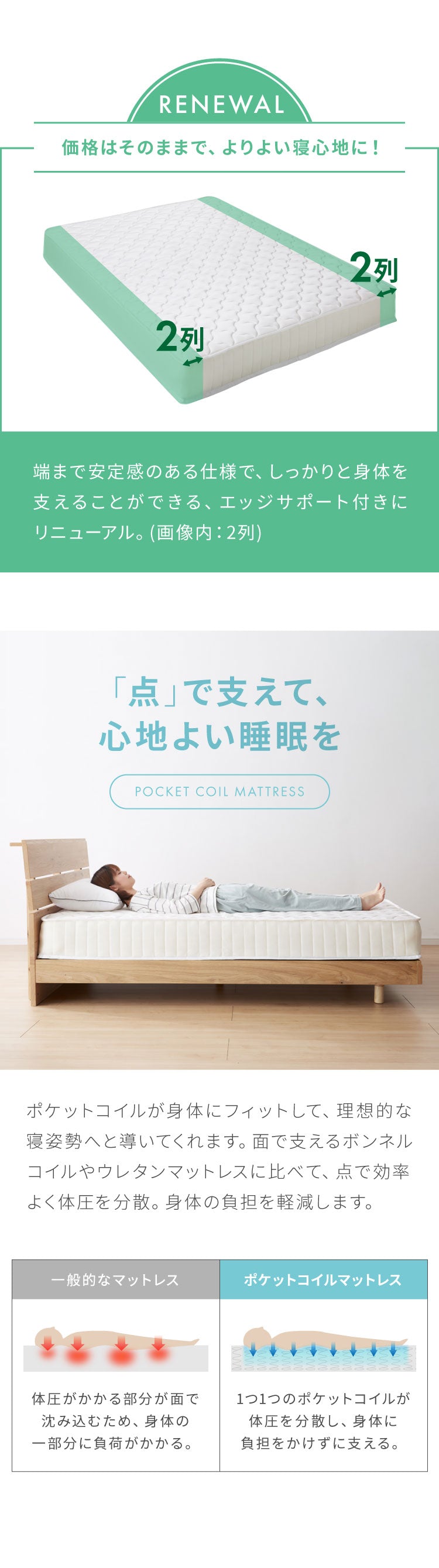 寝具、マットレス、ポケット、コイル、ポケットコイル、ポケットコイルマットレス、ロールマットレス、熱処理、ホワイト、白、ブラック、黒、圧縮、梱包、ロール、梱包、コンパクト、通気性、キルティング、体圧分散、新生活、エコテックス認証、極厚、コイル数、429個、528個、660個、759個、891個、990個