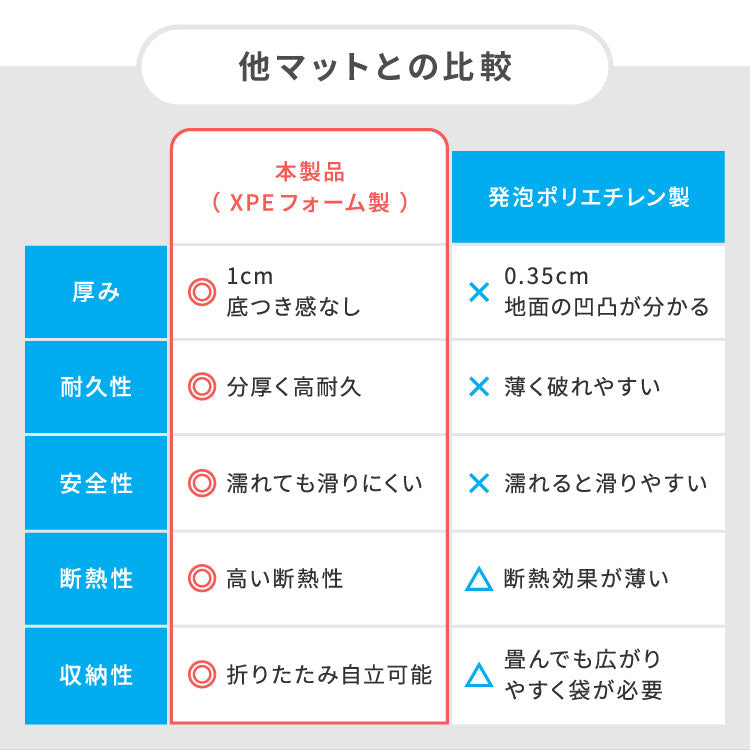 ・断熱性の高いXPEフォームで地面の熱をシャットアウトします。