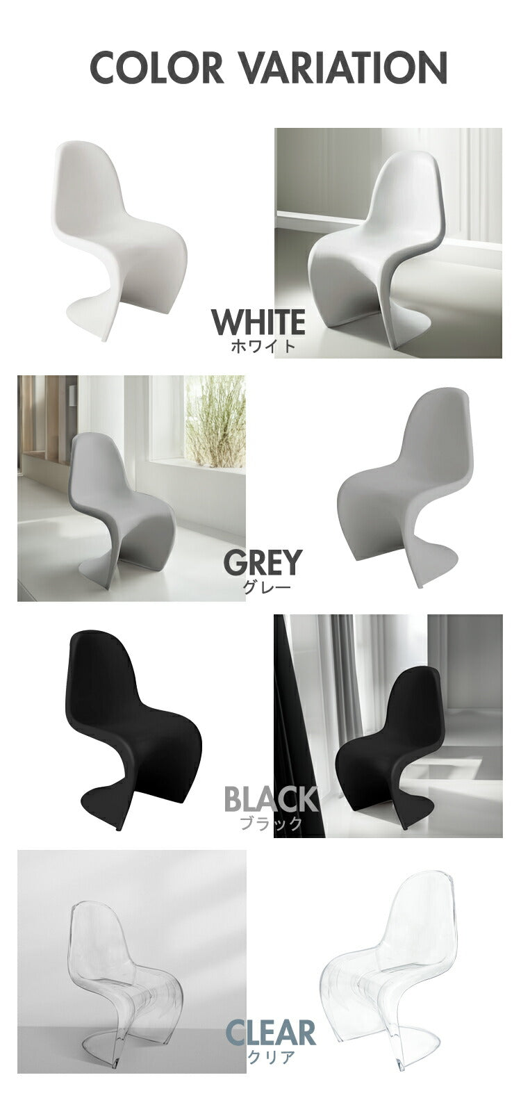 パントンチェア、チェア、デザイナーズ、ヴェルナー・パントン、リプロダクト、ジェネリック、ホワイト、ホワイトインテリア、ブラック、スモークグレー、1人掛け、デスクチェア、ダイニングチェア、パーソナルチェア、新生活、一人暮ら、名作家具、PCチェア、おしゃれ、かわいい