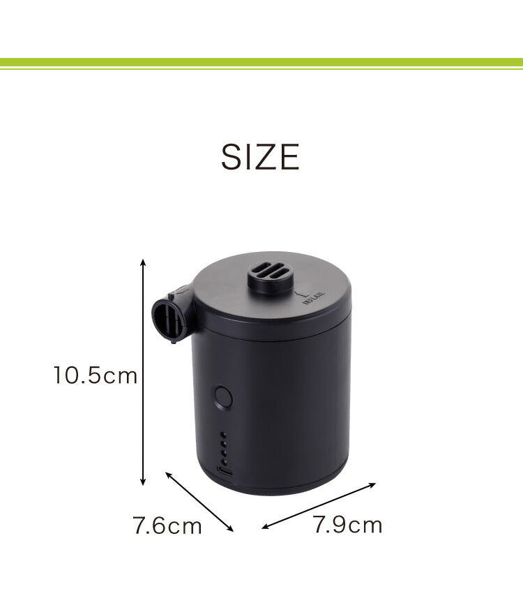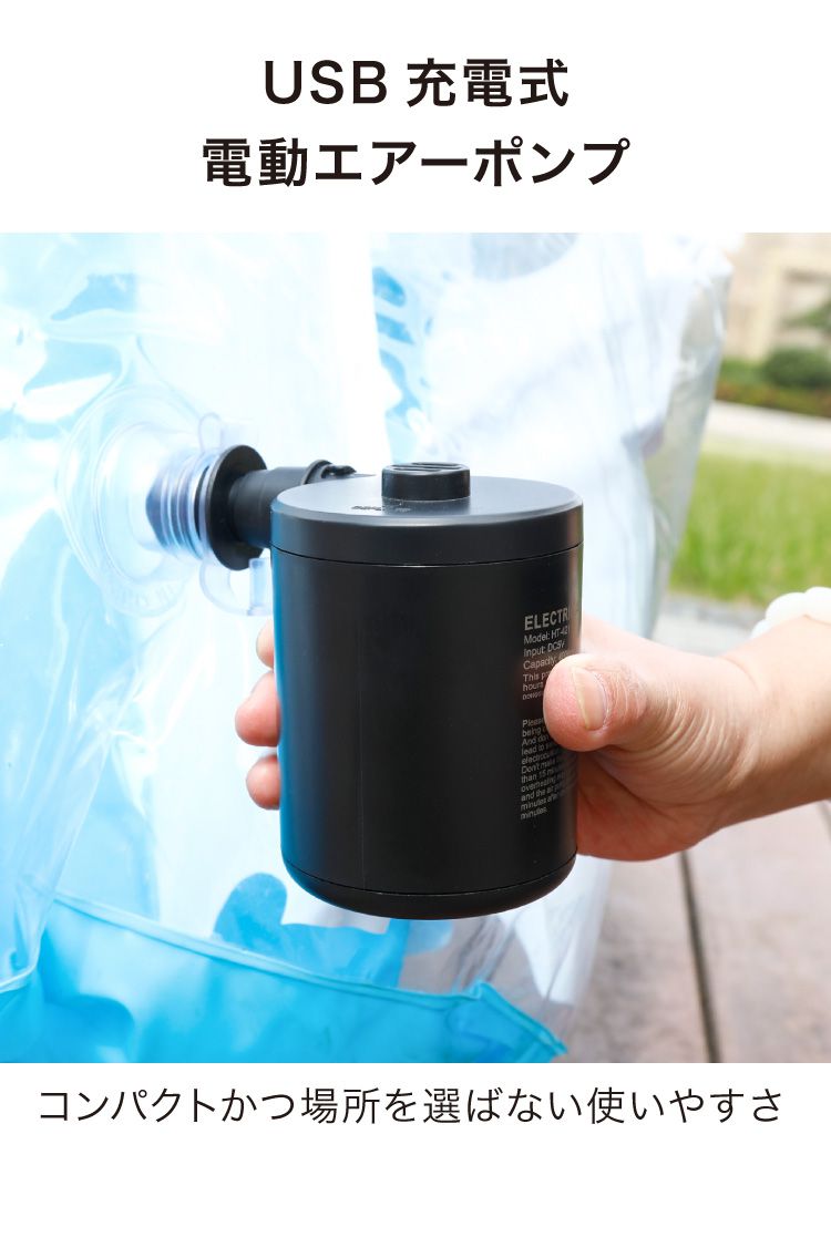 電動エアーポンプ、エアーポンプ、電動ポンプ、携帯用ポンプ、USB充電式、ノズル付き、コンパクト、軽量