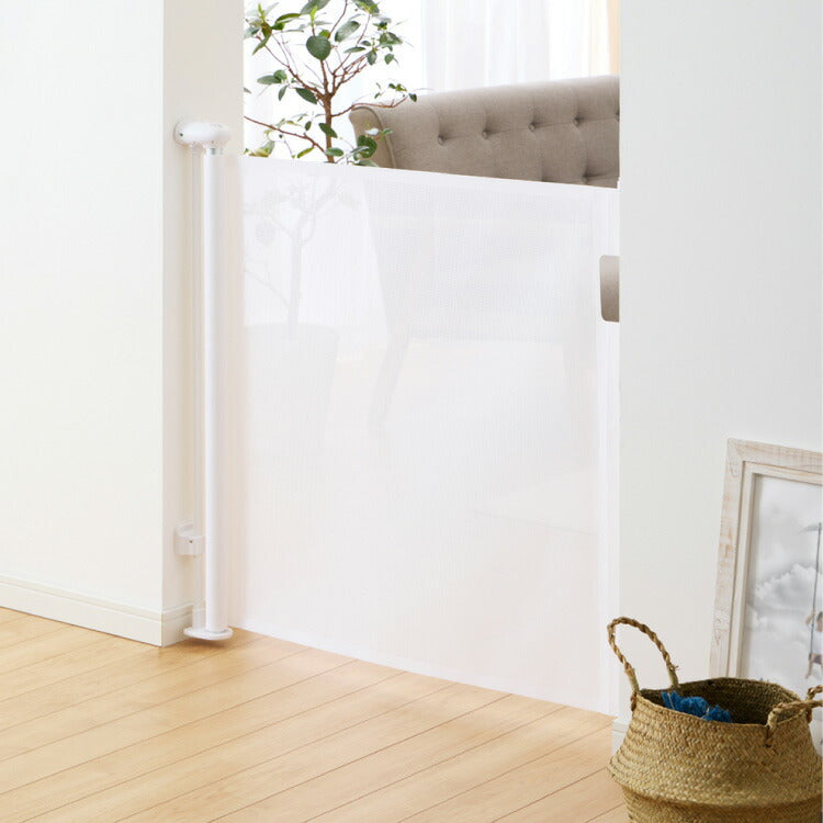 ベビーゲート ワイド ロール式 最大幅140cm 二重ロック メッシュ ホワイト 高さ86cm 省スペース コンパクト シンプル ベビーガード ベビーフェンス ペットフェンス ペットガード セーフティーガード