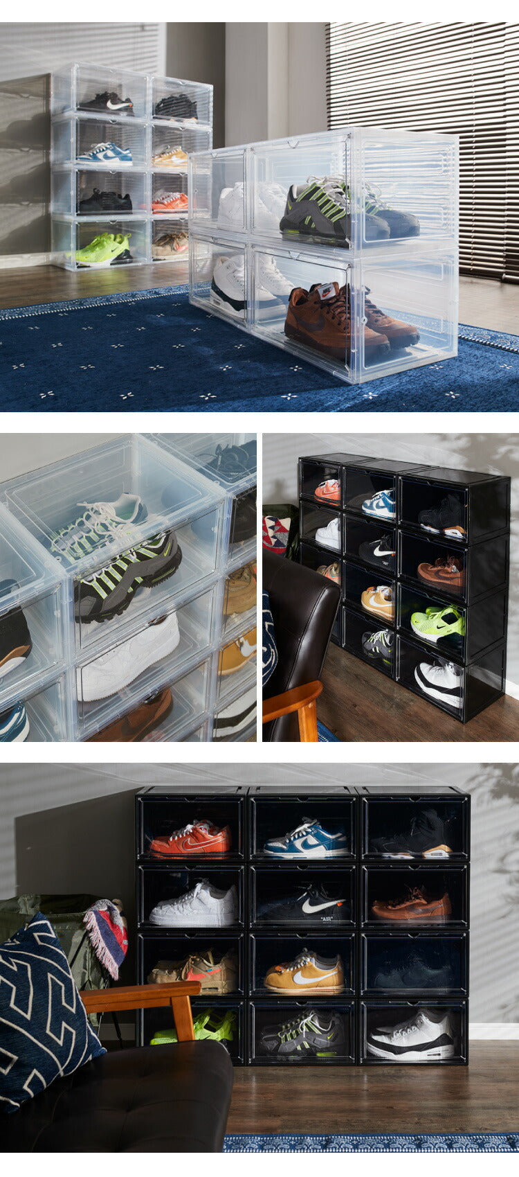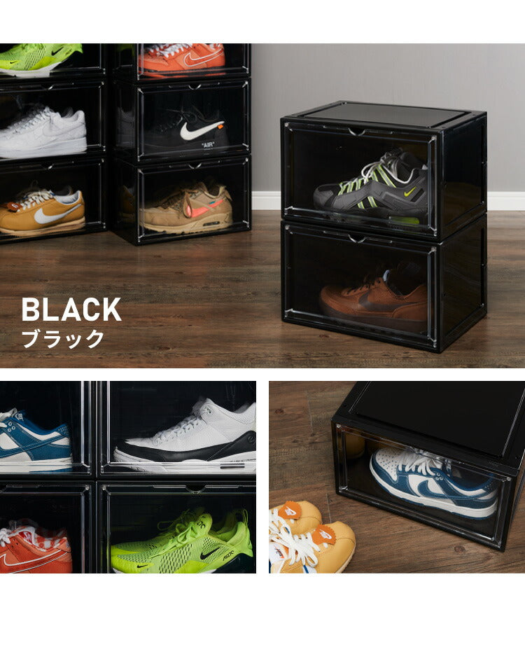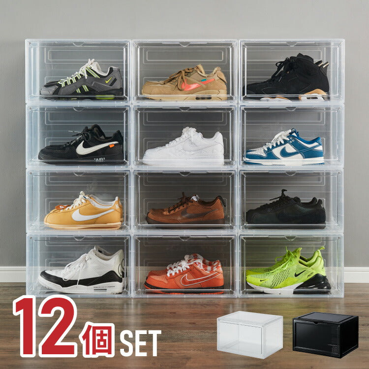 【12個セット最安値挑戦中】シューズボックス 12個セット クリア ブラック スニーカー 透明 スタッキング可能 ハイカット対応 おしゃれ インテリア シューズケース コレクションケース