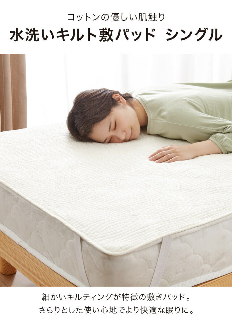 敷きパッド シングル 水洗いキルト 綿100% コットン キルティング キルト生地 洗える 中綿入り ウォッシャブル 洗濯可 静電気防止 夏 おしゃれ 北欧 敷パッド しきパッド 敷パット 敷きパット