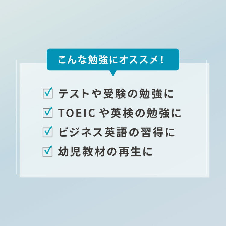 CDプレーヤー、ポータブルCDプレーヤー、音楽プレーヤー、オーディオプレーヤー、語学学習、CD学習、英語、勉強、リスニング、ヒアリング、TOEIC、TOEFL、英検、入試、受験勉強、簡単操作、使いやすい、誤作動防止機能、音飛び防止、早送り、早戻し、リピート再生、イントロ再生、プログラム再生、重低音、2WAY電源、乾電池、USB給電、家庭用コンセント、携帯、持ち運び、小型、コンパクト、薄型、子供、高齢者、学生イヤホン付き、シンプル、おしゃれ、オシャレ