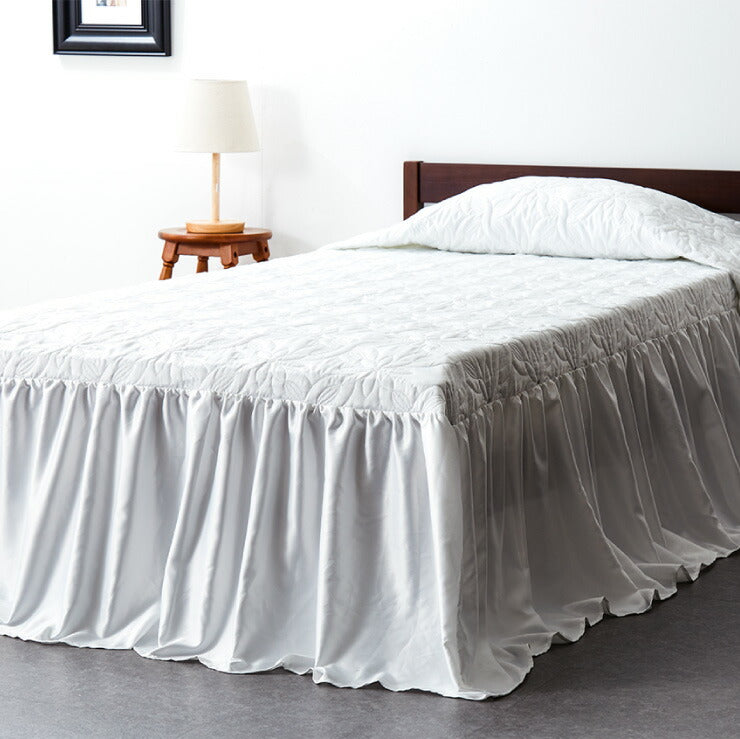 ベッドカバー おしゃれ 北欧 セミダブル 130×280×45cm 洗える ウォッシャブル フリル ナチュラルフリル エレガント 刺繍 フリル 銀糸 ピーチスキン加工 SD 1枚入り ホテル仕様 寝具 ベッドスプレッド ベッドスカート