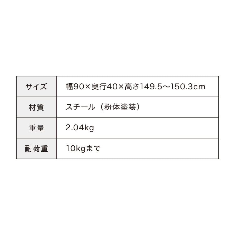・高さ150cmでロング丈のコートやワンピースもかけることができます。