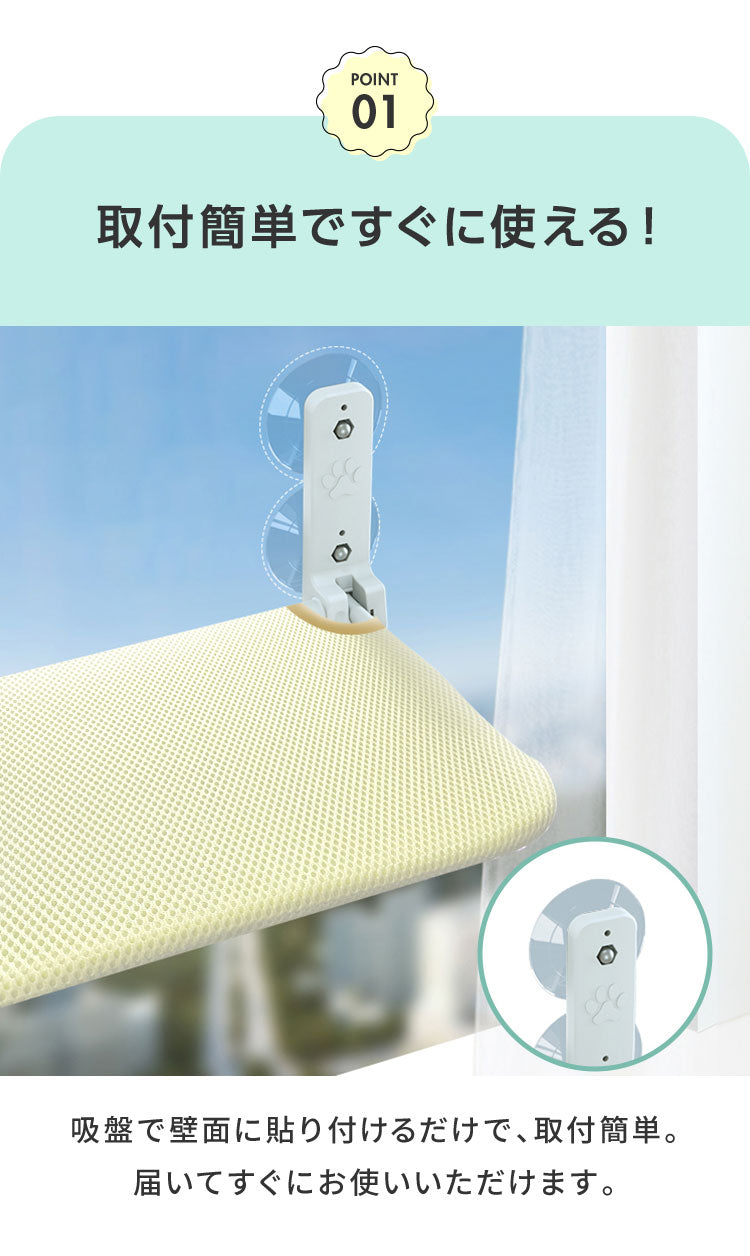 ・窓に貼りつけるだけで、猫ちゃんのくつろぎスペースに