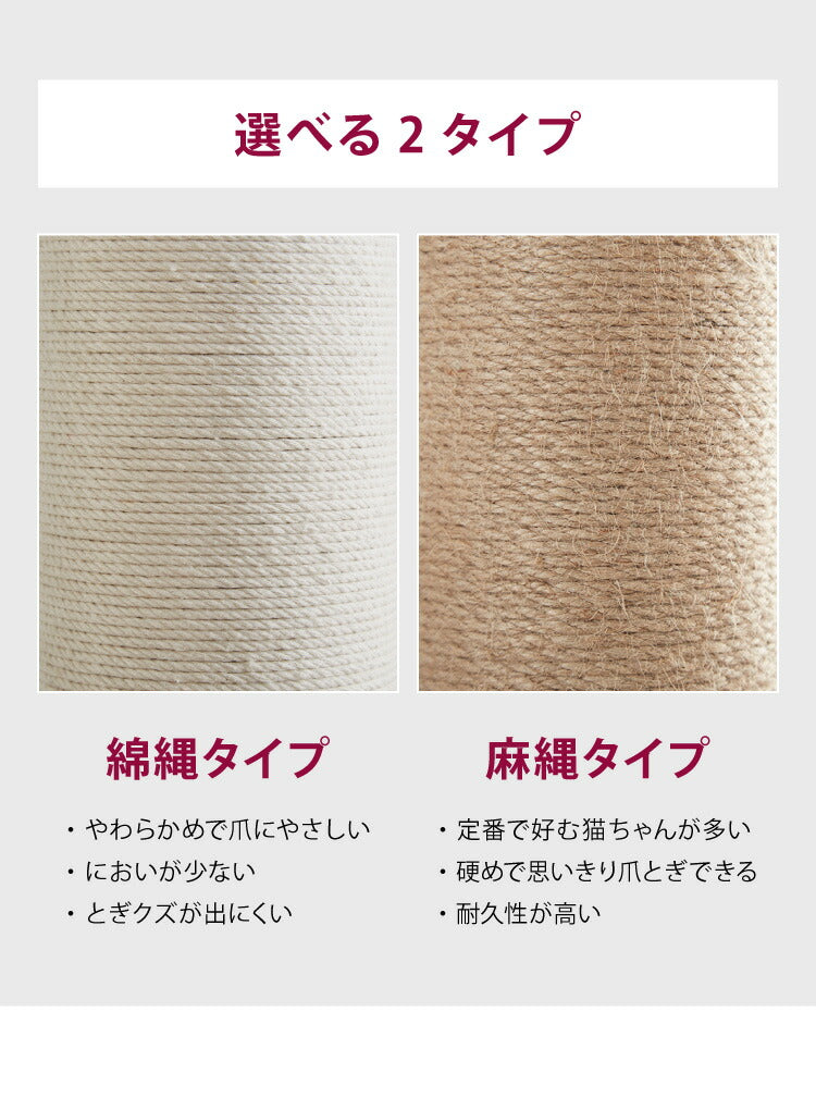 ・支柱には麻縄が巻かれているため、猫ちゃんがいつでも爪とぎできます。