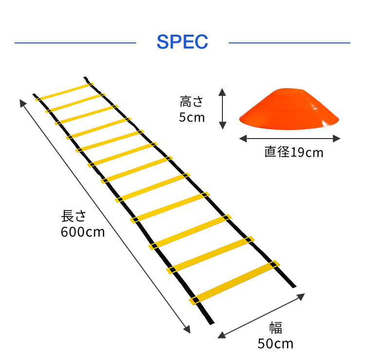 ラダー、トレーニング、マーカーコーン、アジリティ、トレーニング、室内練習、屋外練習、トレーニング用品、野球、練習器具、サッカー、フットサル、陸上、バスケ、部活動、クラブ活動、室内、屋外、体育館、持ち運び便利、練習、スピード、瞬発力、俊敏性、筋力、体力、スポーツ、反射神経、小学生、中学生
