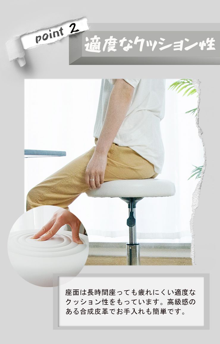 ・適度なクッション性をもっており座面は長時間座っても疲れにくいつくりになっています。