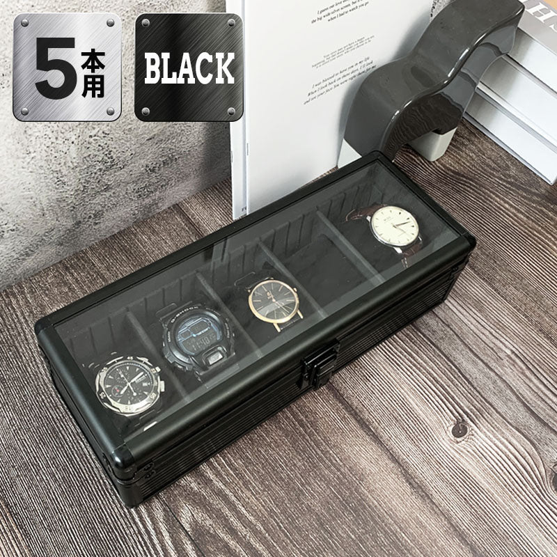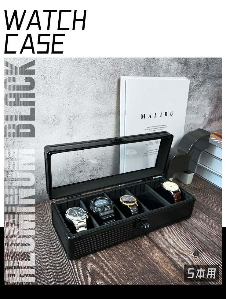 時計収納ケース 5本 アルミ おしゃれ ブラック 時計ケース 腕時計ケース 5本入り クッション付き ギフト プレゼント インテリア コレクション 高級 ウォッチケース 収納 ケース 腕時計 時計 ビジネス