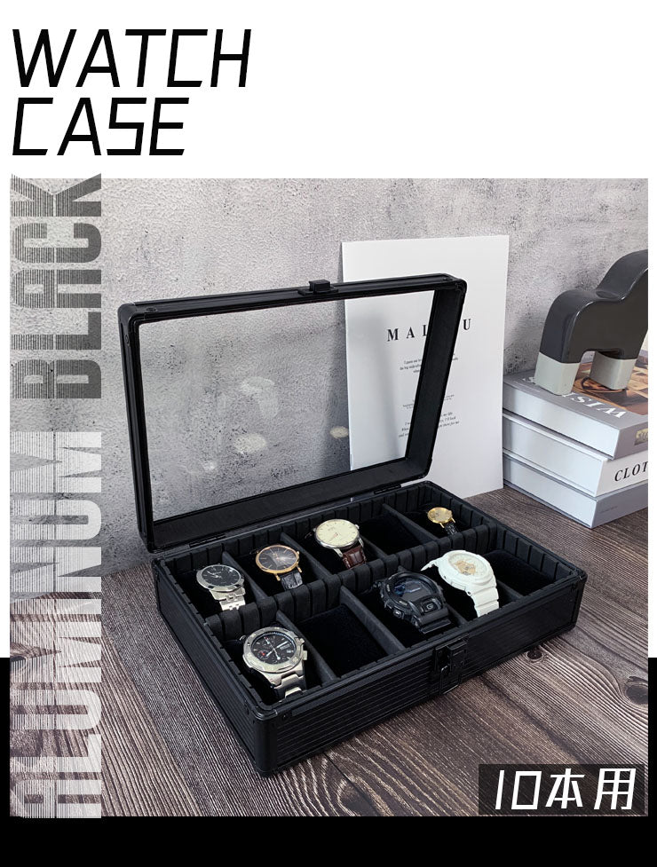 時計収納ケース 10本 アルミ おしゃれ ブラック 時計ケース 腕時計ケース 10本入り クッション付き ギフト プレゼント インテリア コレクション 高級 ウォッチケース 収納 ケース 腕時計 時計 ビジネス