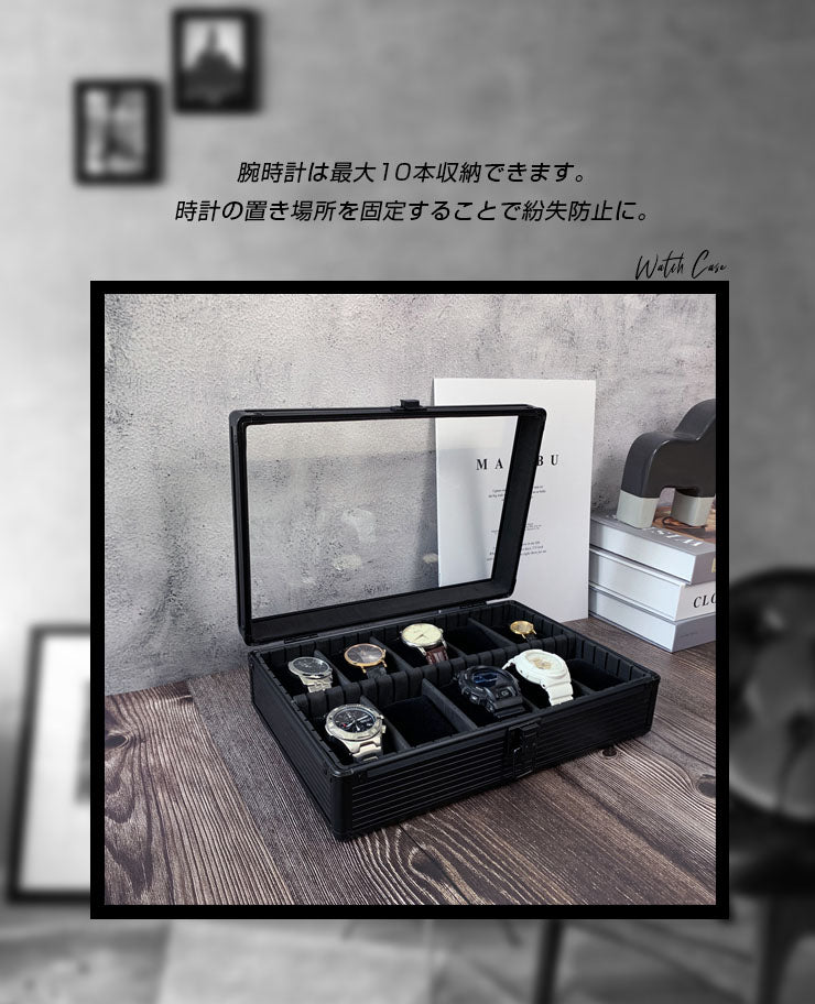 腕時計収納ケース、腕時計10本、アルミ、ガラス、ブラック、ベルベットクッション、高耐久性、仕切り調節、おしゃれ、高級、メンズ、レディース、スタイリッシュ、腕時計ケース、ウォッチケース、小物入れ、アルミケース、ウォッチボックス、時計ケース、時計収納、収納ケース、腕時計ディスプレイ、メンズ、コレクション、ケース、ブラック、インテリア、ディスプレイ、ウォッチケース、保管、腕時計、コレクション、ケース、ウォッチケース、オシャレ、インテリア、韓国、韓国インテリア、プレゼント、紳士、婦人、父の日、高級、木製、ウォッチボックス、アクセサリーボックス、アクセサリーケース