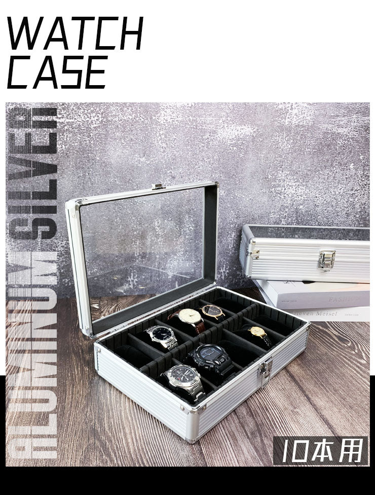 時計収納ケース 10本 アルミ おしゃれ シルバー 時計ケース 腕時計ケース 10本入り クッション付き ギフト プレゼント インテリア コレクション 高級 ウォッチケース 収納 ケース 腕時計 時計 ビジネス