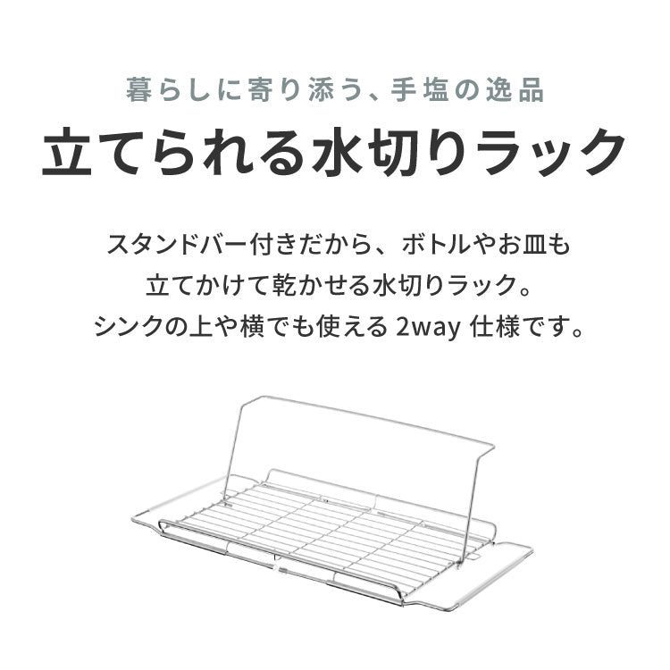 tesione テシオン 水切りラック 2way 立てかけ 折りたたみ ステンレス 水切りかご 幅21.9×奥行44~55cm 伸縮式 コンパクト 折り畳み TS-003