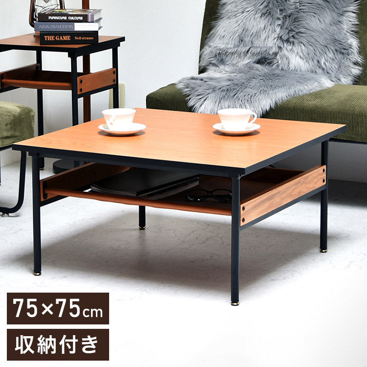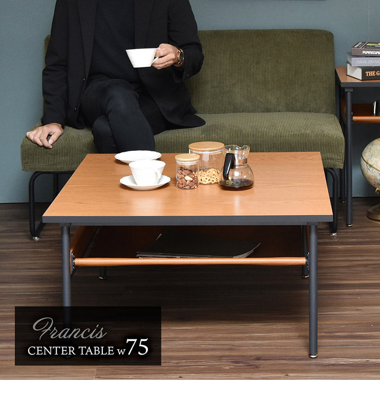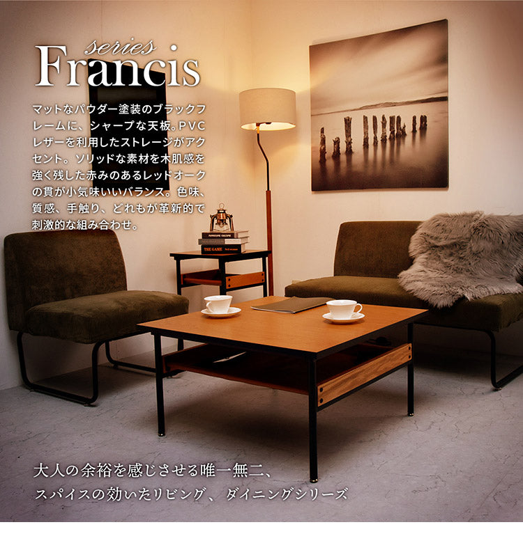 レザー棚付きセンターテーブル 幅75cm 正方形 PVCレザー ブラックフレーム 防水 ローテーブル おしゃれ センターテーブル テーブル ローテーブル センターテーブル francis(代引不可)