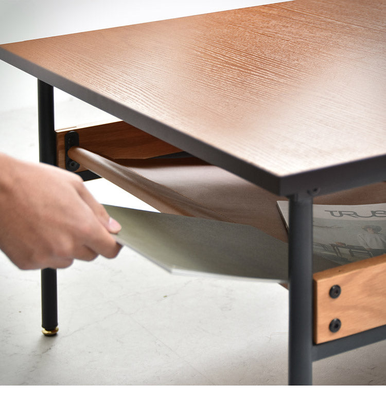 天板下にレザーを張った収納スペース。
