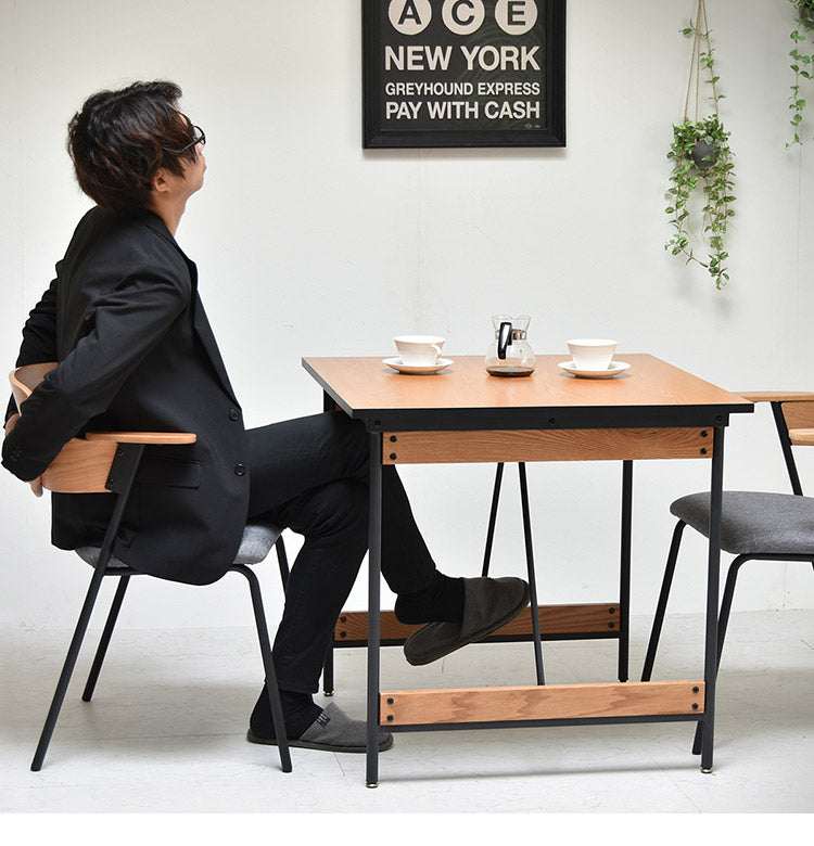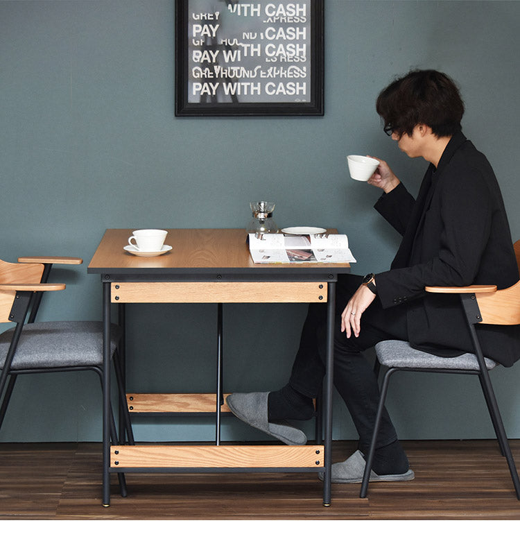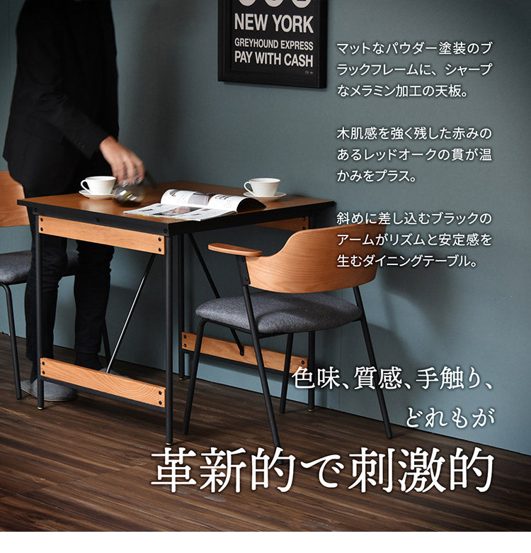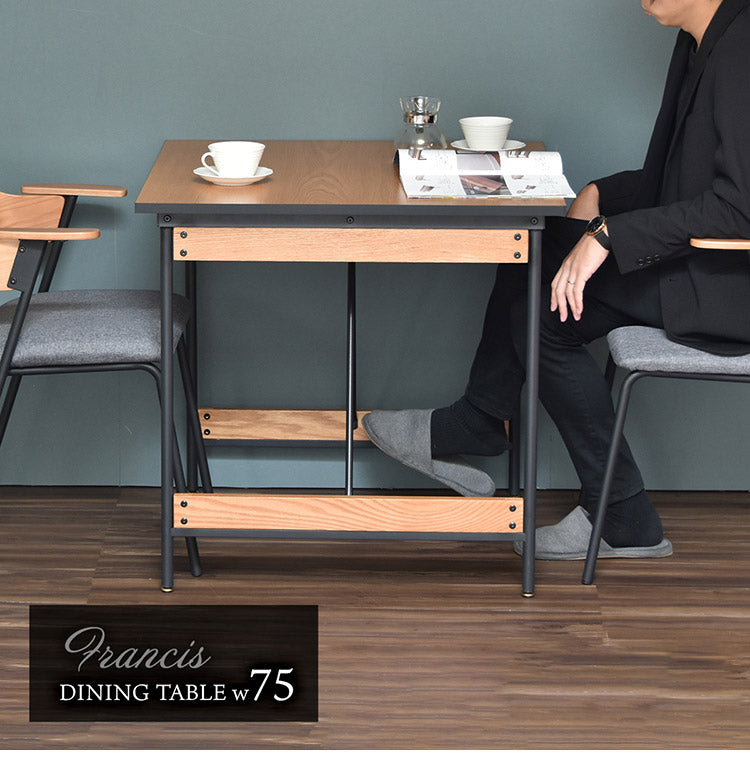 ダイニングテーブル単品 幅75cm 2人用 ブラックフレーム 木目デザイン ダイニングテーブル アイアン スチール 脚 テーブル リビングダイニングテーブル ハイテーブル 食卓 長方形テーブル(代引不可)