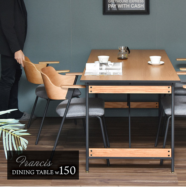 ダイニングテーブル単品 幅150cm 4人用 W150 ブラックフレーム 木目デザイン ダイニングテーブル アイアン スチール 脚 テーブル リビングダイニングテーブル ハイテーブル 食卓 長方形テーブル(代引不可)