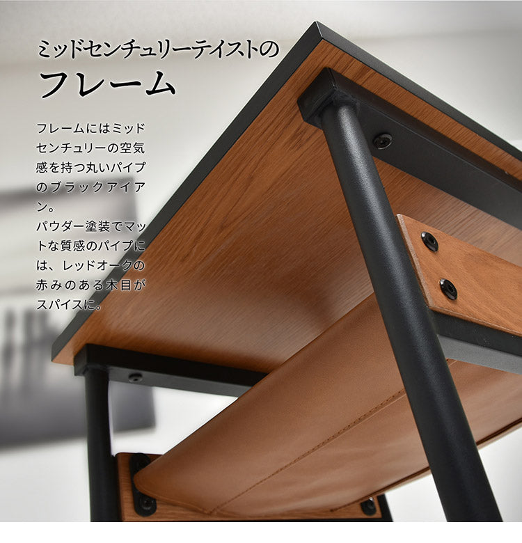 ■ 素材:【天板】パーティクルボードにメラミン貼り【棚】PVCレザー【フレーム】スチールパイプ(粉体塗装)オークの天然木(ラッカー塗装)