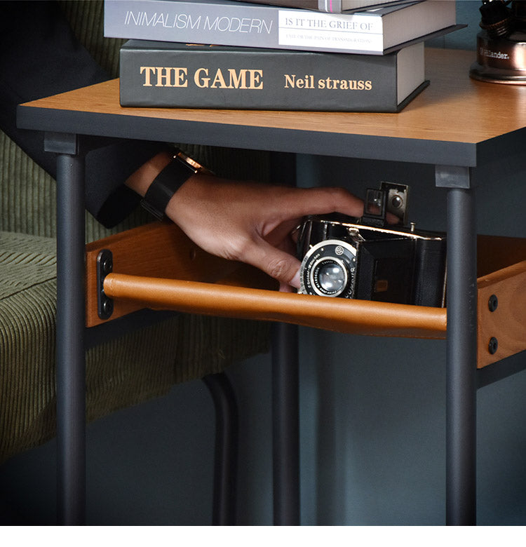 レザー棚付きサイドテーブル 正方形 PVCレザー ブラックフレーム ナイトテーブル ベッドサイド ローテーブル おしゃれ センターテーブル 木製 テーブル ローテーブル センターテーブル(代引不可)