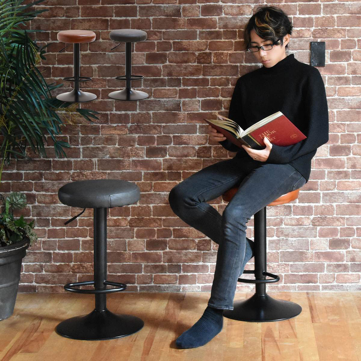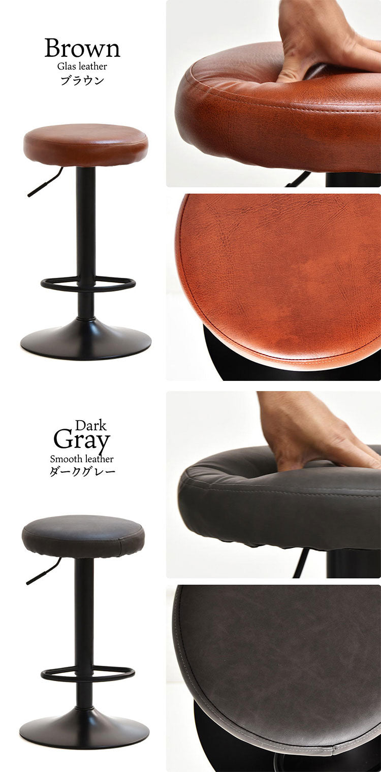 チェア チェアー スツール レザー 昇降式 昇降 高さ調節 カウンター カウンターチェア カウンタースツール ブラウン グレー PUレザー モダン ヴィンテージ バーカウンター(代引不可)