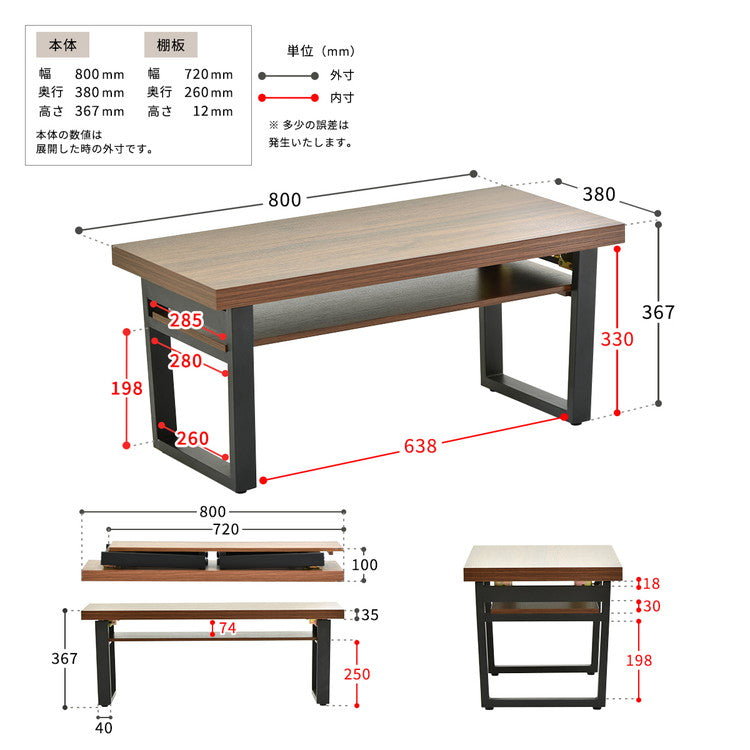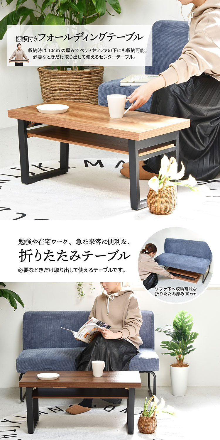 折りたたみテーブル 折れ脚テーブル W800×D380×H370mm 棚板付き たためる おりたたみ おりたたみテーブル 折りたたみ 折りたたみテーブル 折りたたみローテーブル(代引不可)