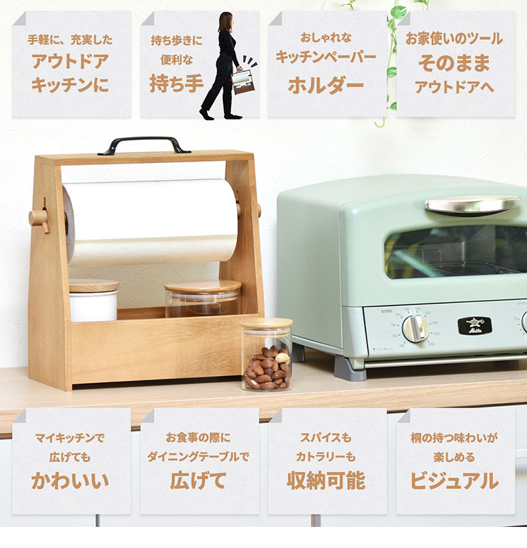 アウトドア ペーパーホルダー ナチュラル キッチン 持ち運び 天然木 おしゃれ 収納 小物 キッチンペーパー カトラリー(代引不可)