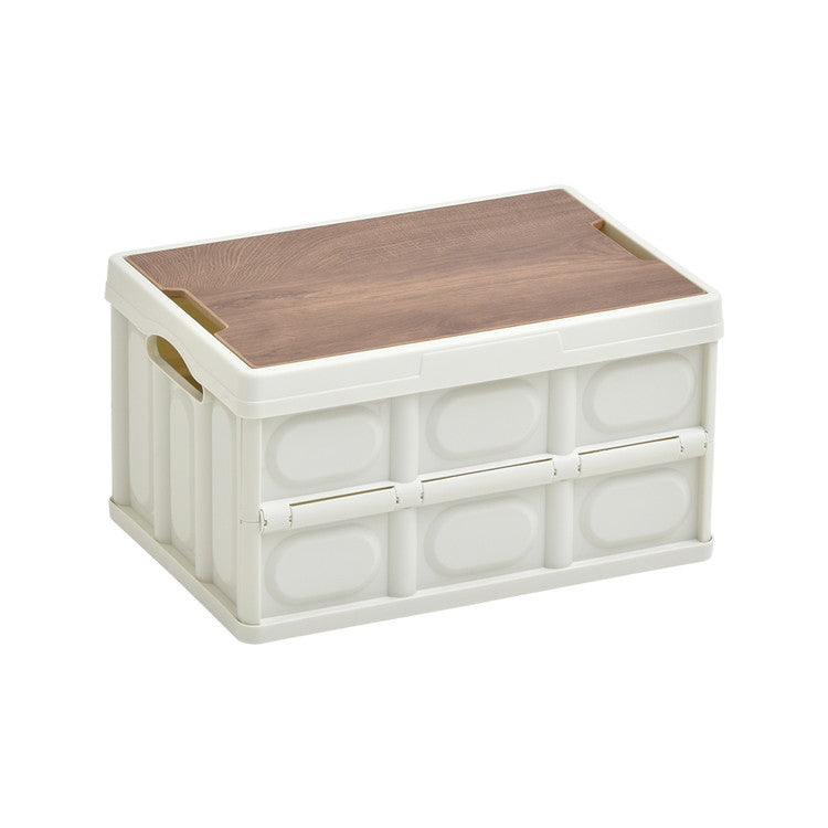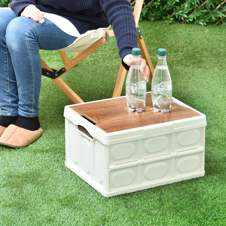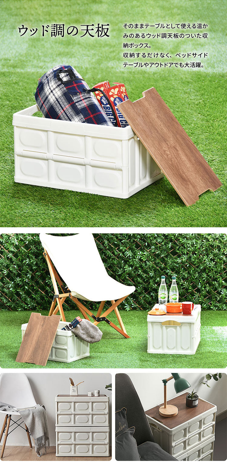 ウッド調の天板と折りたたみ可能で使わないときはコンパクトになるストレージ30L。 おしゃれなホワイトカラーと高級感のあるウッド長の天板でどんなインテリアにも違和感なく溶け込んでくれます。