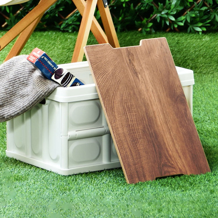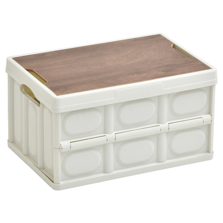 ウッド調の天板と折りたたみ可能で使わないときはコンパクトになるストレージ50L。 おしゃれなホワイトカラーと高級感のあるウッド長の天板でどんなインテリアにも違和感なく溶け込んでくれます。