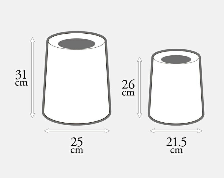二重構造でご使用時にもゴミ袋が見えずにきれいに使える、シンプルでスタイリッシュなダストボックス。二重構造の内側のボックスにゴミ袋を引っかけて、表側のカバーを上からはめるだけなので、簡単にゴミ袋のセッティングもできて使いやすい。円錐形なので、シャープな見た目でデザイン性も高いです。