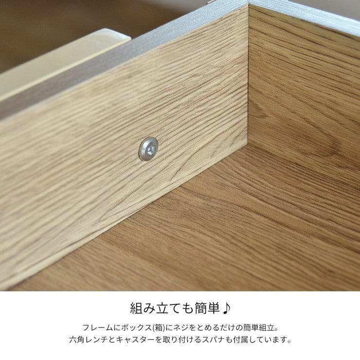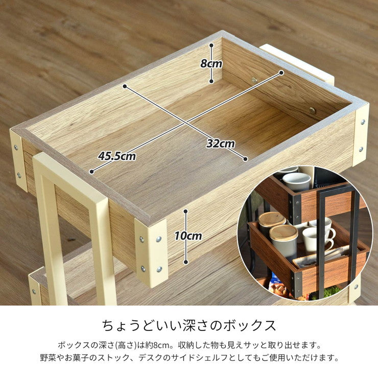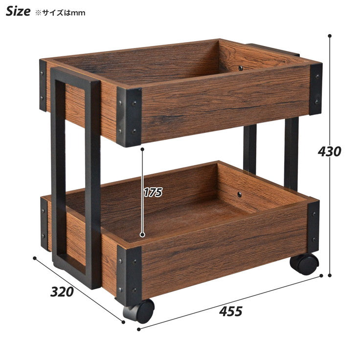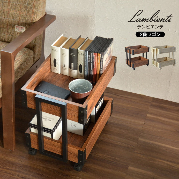 ヴィンテージ風の木目シートとアイアンの組み合わせが絶妙なランビエンテシリーズです。ワゴンにはスチール製やプラスチック製が多い中、木製をにすることで質感の高い仕上がりになっています。キッチンやリビングなど場所を選ばない、デザインです。