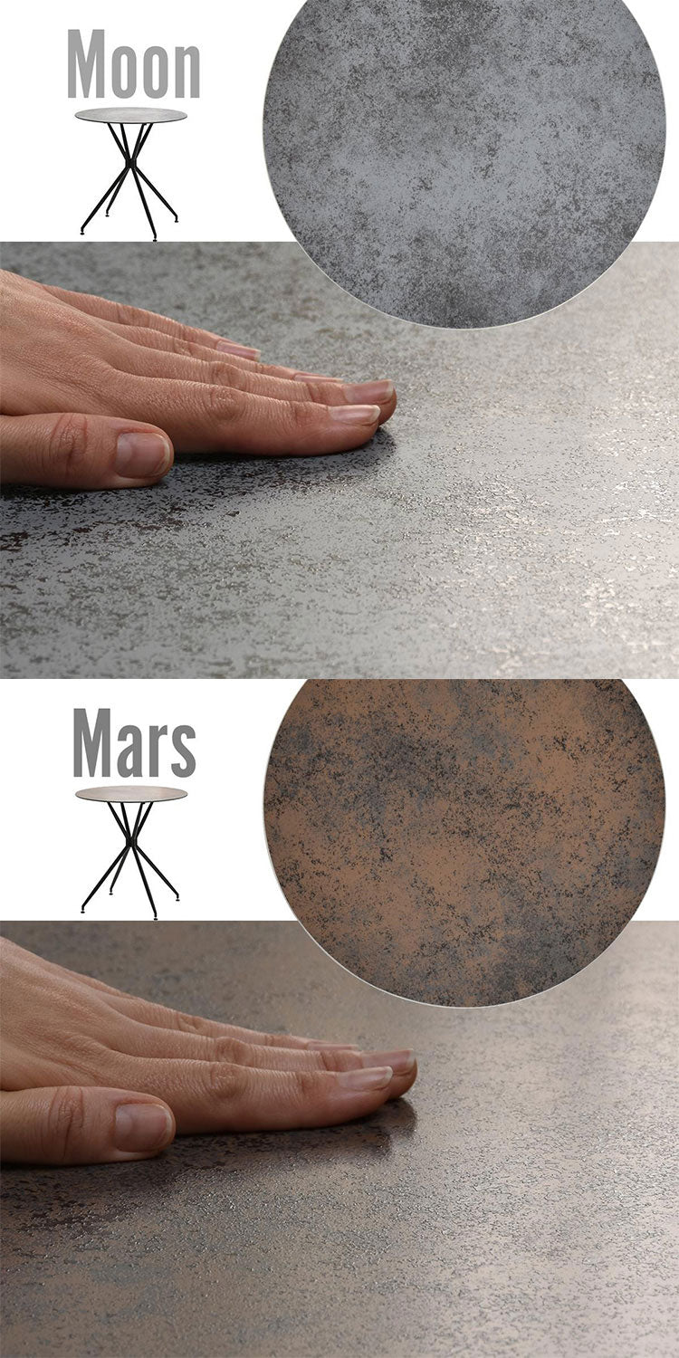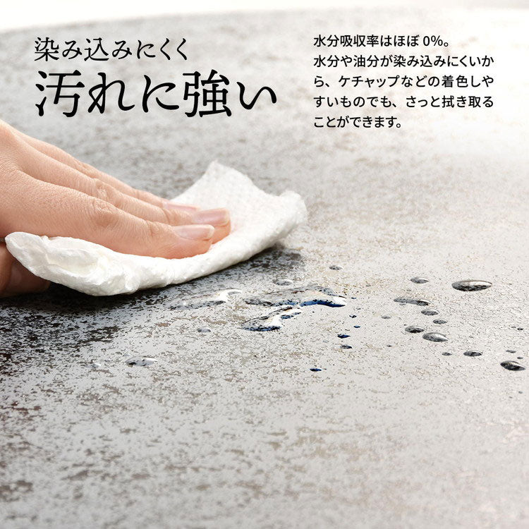 天体の中の惑星(PLANET)と衛星(SATELLITE)をモチーフにして、円形にデザインされたPLLITEシリーズのダイニングテーブル幅70です。天板には強化ガラスの表面にセラミックが焼き付けられており、「耐火・耐熱性」「防水性」「表面硬度」などに非常に優れています。ムーン柄は月をモチーフに、マーズ柄は火星をモチーフにしてデザインされており、月のクレータの様な表情になるように、表面には少し凹凸のある仕上げにする事で、立体的なデザインになり洗礼されたおしゃれな仕上がりになっています。天板のデザインが引き立つように脚のデザインにも工夫を凝らし、放射線状に伸びるような構造の脚にする事で全体的なバランスを整えました。デザイン性と機能性を兼ね揃えたPLLITEシリーズはおすすめです。
