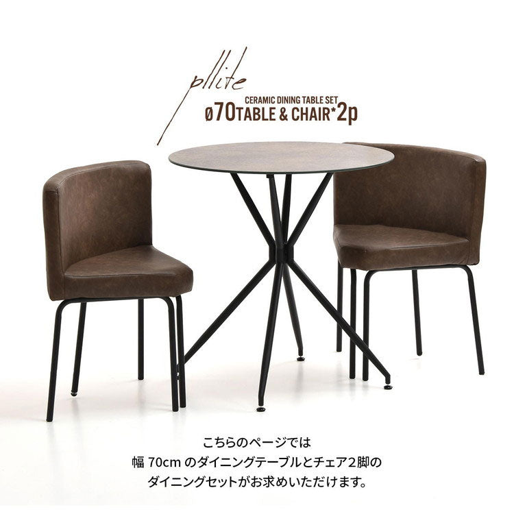 天体の中の惑星(PLANET)と衛星(SATELLITE)をモチーフにして、円形にデザインされたPLLITEシリーズのダイニングテーブル幅70とチェア2脚の「3点セット」です。天板には強化ガラスの表面にセラミックが焼き付けられており、「耐火・耐熱性」「防水性」「表面硬度」などに非常に優れています。ムーン柄は月をモチーフに、マーズ柄は火星をモチーフにしてデザインされており、月のクレータの様な表情になるように、表面には少し凹凸のある仕上げにする事で、立体的なデザインになり洗礼されたおしゃれな仕上がりになっています。天板のデザインが引き立つように脚のデザインにも工夫を凝らし、放射線状に伸びるような構造の脚にする事で全体的なバランスを整えました。チェアは個性的なデザインの天板に合うように、選び抜かれた生地が使用されているので、同シリーズでまとめるとお部屋の空間にも統一感が出ておすすめです。