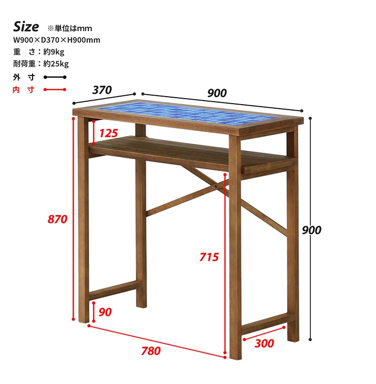 天板:パイン天然木(ラッカー塗装)、セラミックタイル、中質繊維板
