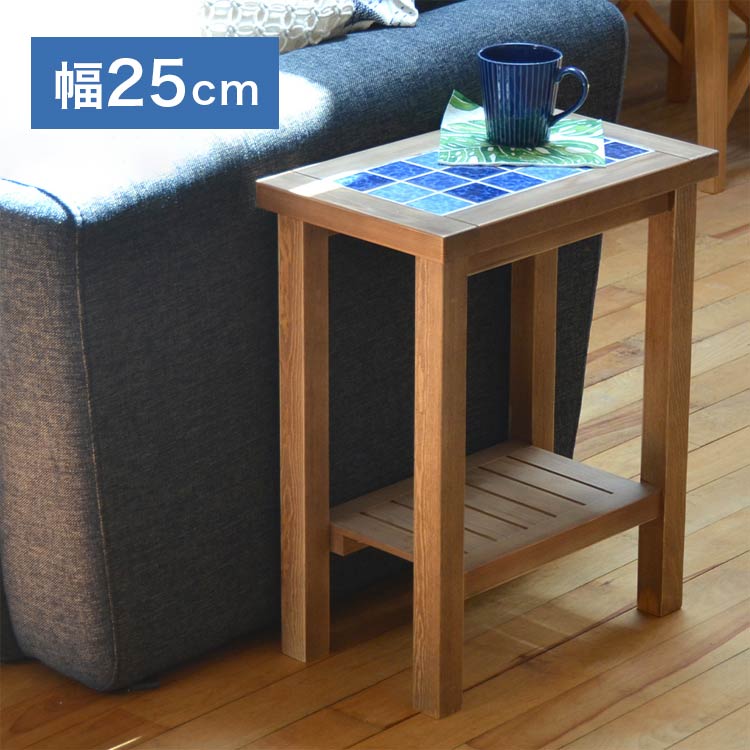 サイドテーブル スリム PUDDLE 幅25 奥行き40 高さ50 テーブル わき机 袖机 ナイトテーブル 天然木 木製 棚付き 収納付き タイル おしゃれ 北欧 西海岸(代引不可)