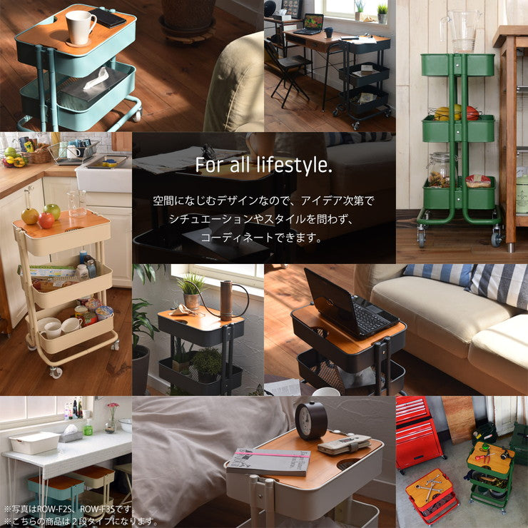 ROSSINIメッシュバスケットワゴンは、天然木とスチールワゴンの組み合わせで収納だけでなくサイドテーブルやキッチンワゴンとしても使用できます。