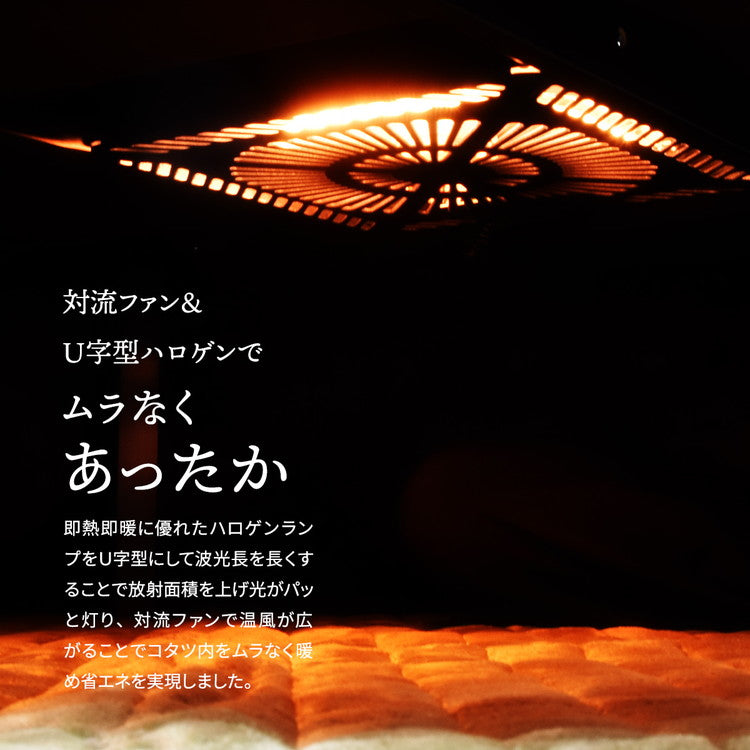素 材:【天板】プリント化粧合板(UV塗装) 【脚フレーム】天然木(ウレタン塗装)【ヒーター】U字型ハロゲンヒーター「メーカー型番:MHU-601E(D)」
