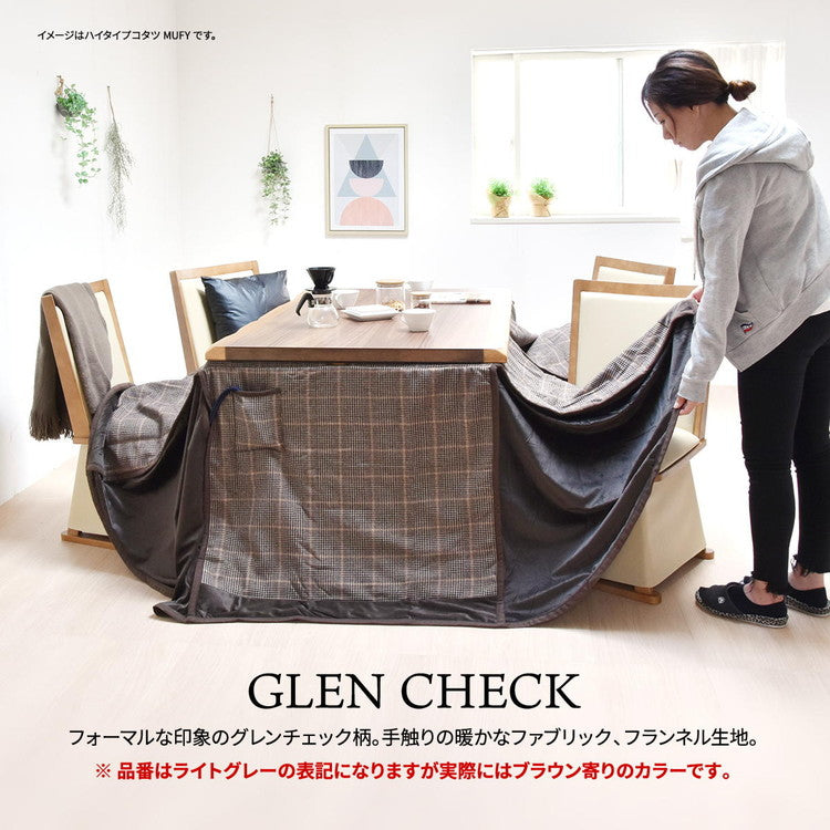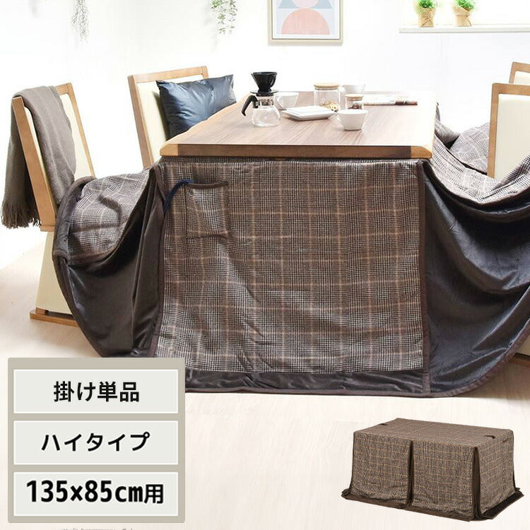 ハイコタツ専用の掛布団です。表面の生地はグレーを基調としたチェック柄で、落ち着きのある大人っぽい雰囲気になっています。落ち着いた雰囲気の生地なので色んなコタツに合います。厚すぎない布団なのでごわつき感もなく、ご使用時もスッキリとした感じでご使用いただけます。対応サイズは【幅135×奥行85cmのハイタイプコタツ】に対応した掛布団になります。