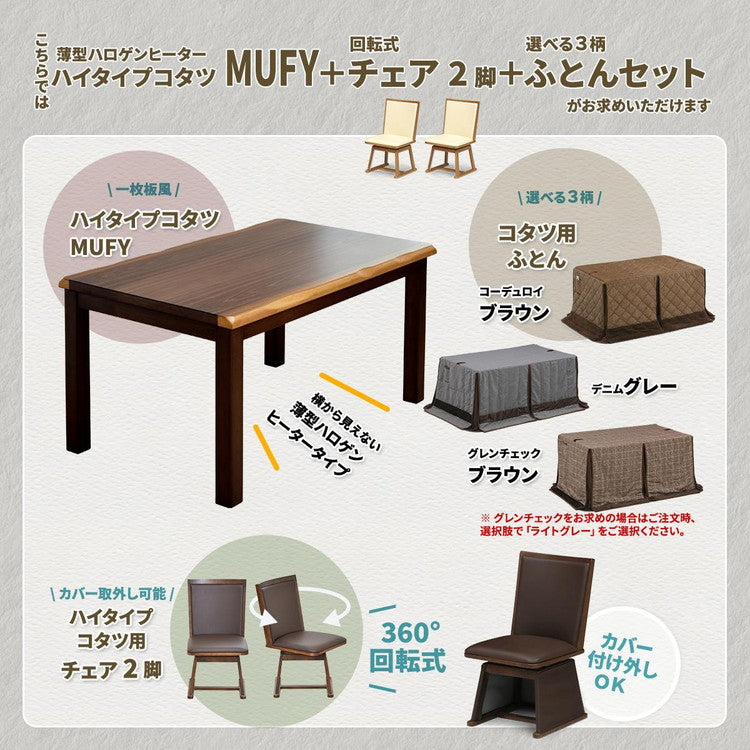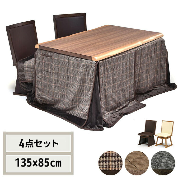 ウォールナット突板 ハイコタツ幅135(4点セット) コタツ コタツ布団 敷き布団 掛け布団 コタツテーブル コタツチェア ダイニングコタツ ローテーブル ダイニング 暖冬 冬 暖房(代引不可)
