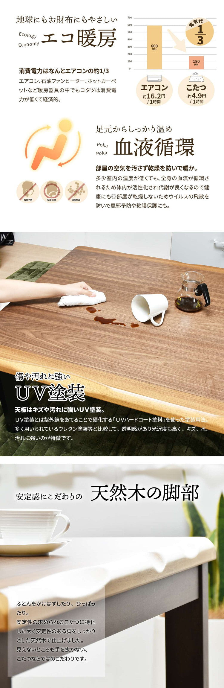 素材:【天板】天然木化粧合板(UV塗装) 【脚フレーム】天然木(ウレタン塗装)【ヒーター】U字型ハロゲンヒーター「メーカー型番:MHU-601E(D)」 /