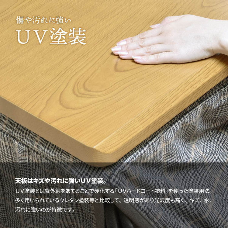 素材:【天板】プリント化粧合板(UV塗装) 【脚フレーム】天然木(ウレタン塗装)【ヒーター】U字型ハロゲンヒーター「メーカー型番:MHU-601E(D)」 /